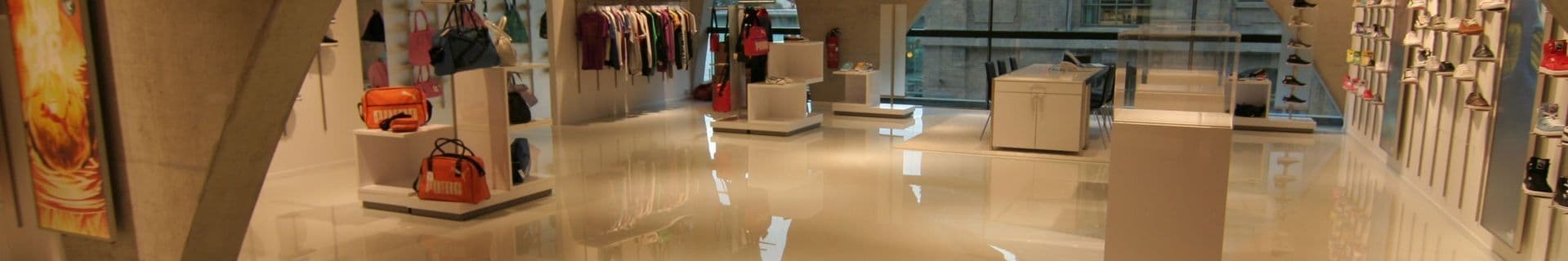 Полимерные полы нашли своё применение во всех помещениях торгового центра. К каждому из этих зон предъявляются свои требования.